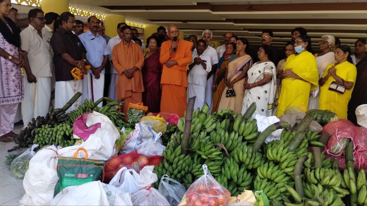 ചിത്രം: ഗുരുധര്മ്മ പ്രചരണസഭ തിരുവനന്തപുരം ജില്ലാ കമ്മറ്റി ചെമ്പഴന്തി ഗുരുകുലത്തില് ഗുരുപൂജാ അന്നദാനത്തിനുള്ള കാര്ഷിക വിളകളും എത്തിച്ചപ്പോള്, സ്വാമി അഭയാനന്ദ, സ്വാമി മഹാദേവാനന്ദ, ജില്ലാ പ്രസിഡന്റ്, ഡോ. സുശീല ഉല്പന്ന സമാഹരണം ജില്ലാ കോ – ഓര്ഡിനേറ്റര് കെ.എസ്. മനോഹരന് എന്നിവര് സമീപം