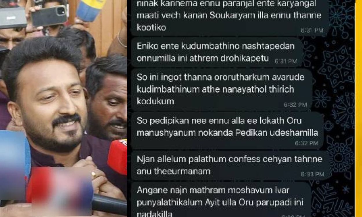 “പേടിപ്പിക്കാൻ നീയെന്നല്ല, ലോകത്ത് ഒരു മനുഷ്യനും നോക്കേണ്ട” എന്ന് തുടങ്ങുന്ന സന്ദേശത്തിൽ, താൻ എല്ലാത്തിന്റെയും എക്സ്ട്രീം കഴിഞ്ഞ് നിൽക്കുകയാണെന്നും ഇനി എന്തിനും തയ്യാറാണെന്നും രാഹുൽ പറയുന്നു. താൻ മാത്രം മോശക്കാരനാകുന്ന രീതിയിലുള്ള കുറ്റസമ്മതത്തിനില്ലെന്നും, പരാതിയുമായി മുന്നോട്ട് പോയാൽ ഗുരുതരമായ പ്രത്യാഘാതങ്ങൾ ഉണ്ടാകുമെന്നുമാണ് രാഹുലിന്റെ ഭീഷണി.
